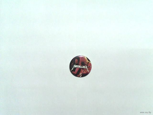 Значок на булавке.Metallica (Hetfield,Newsted).Диаметр 40 мм.