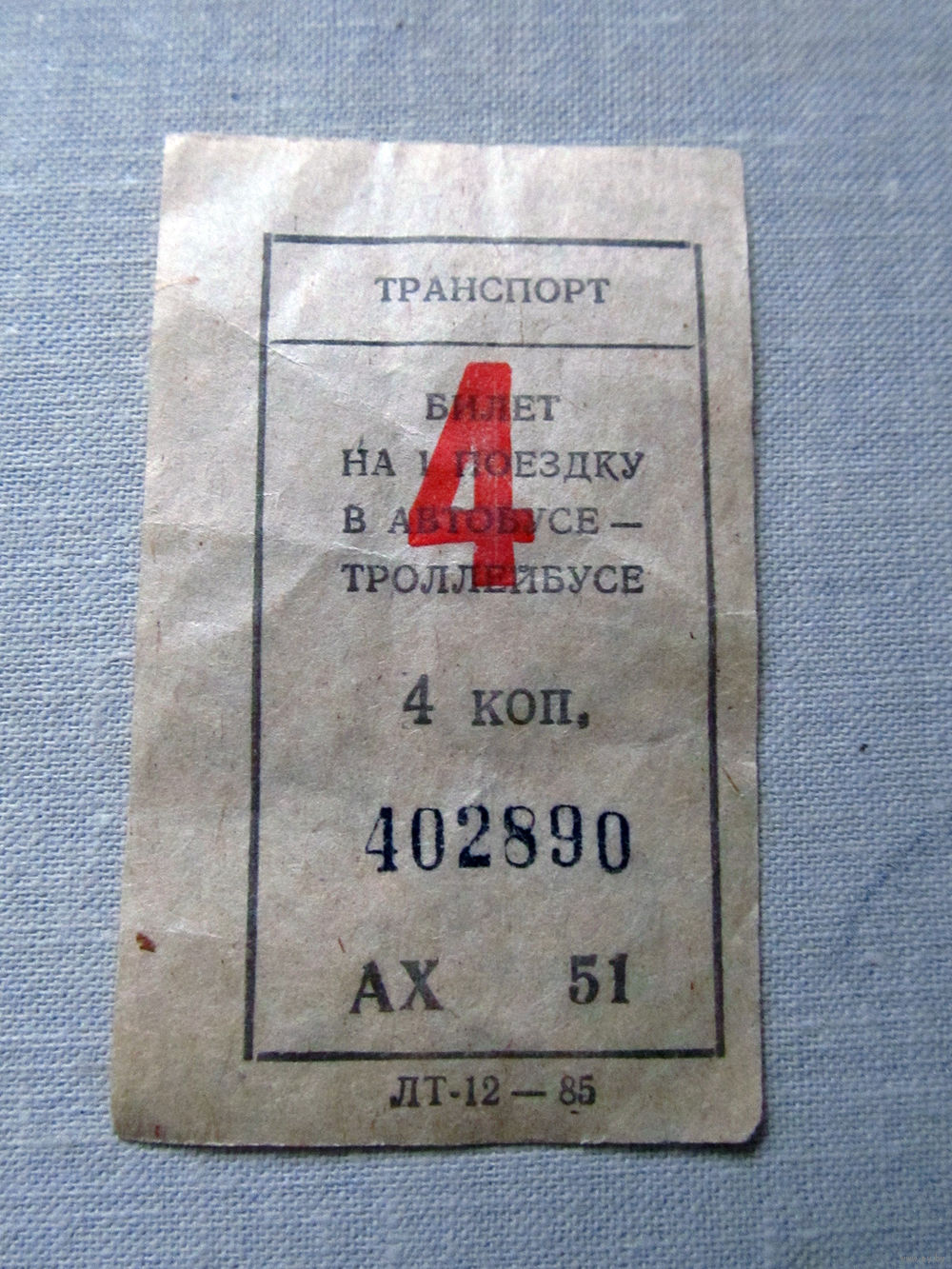 012 Талон (билет) на проезд автобус – троллейбус Беларусь БССР СССР 1985