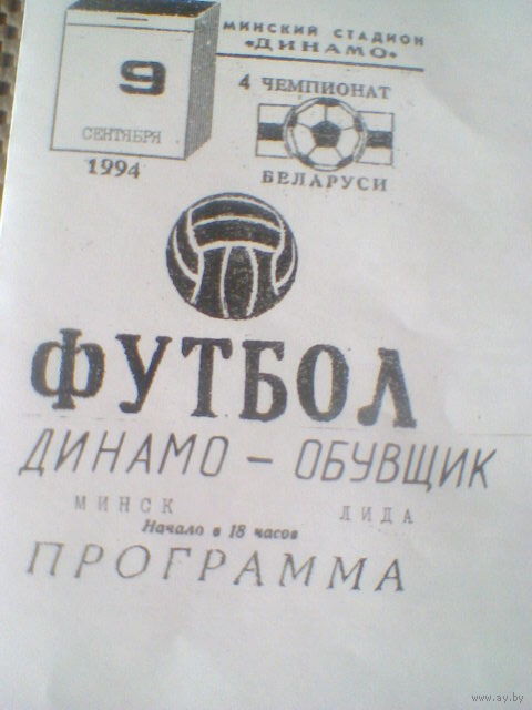 09.09.1994--Динамо Минск--Обувщик Лида--тираж 20 штук