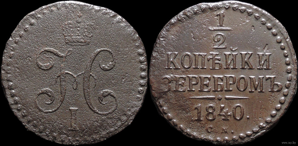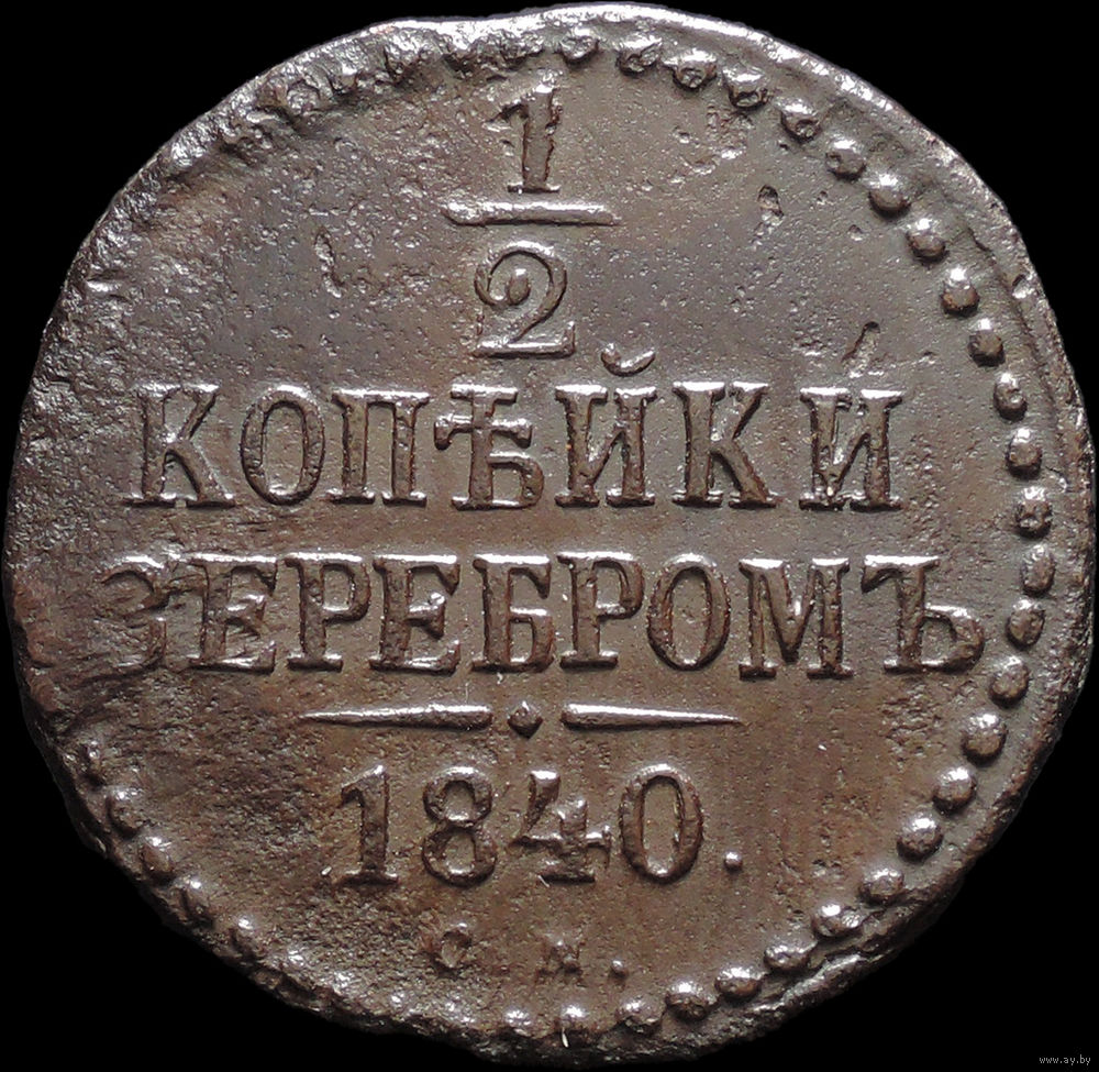 1/2 копейки 1840 СМ, Отличная! С 1 Рубля! Смотрите другие лоты!