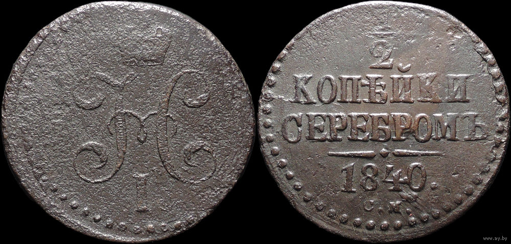 1/2 копейки 1840 СМ, Отличная! С 1 Рубля! Смотрите другие лоты!