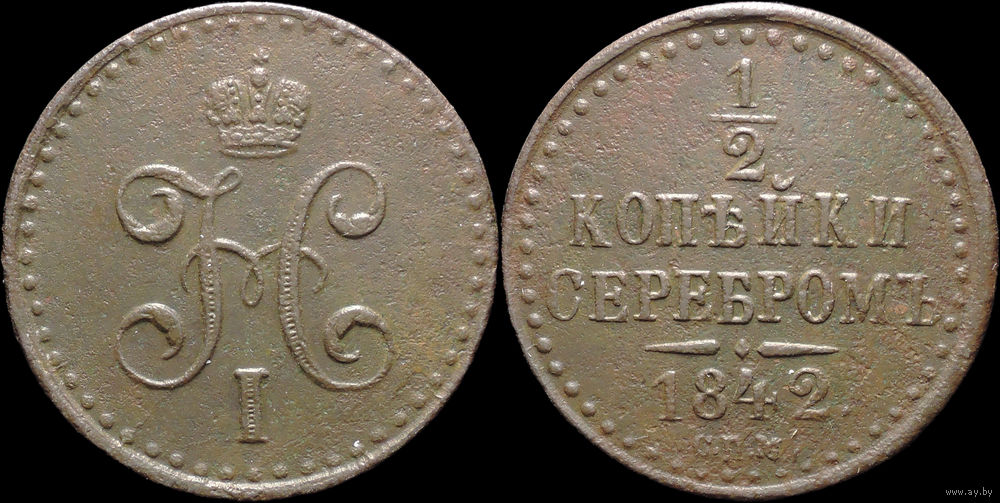 1/2 копейки 1842 СПМ, Отличная! С 1 Рубля! Смотрите другие лоты!