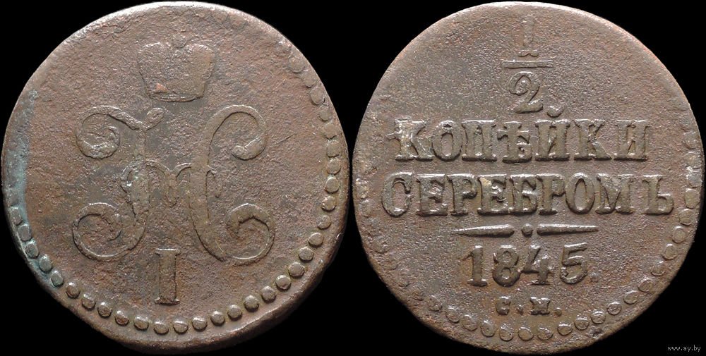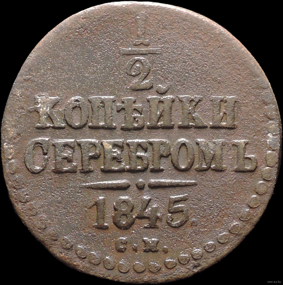 1/2 копейки 1845, С 1 Рубля! Смотрите другие лоты!