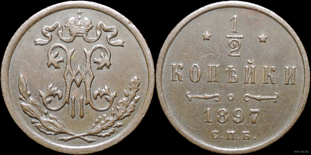 1/2 копейки 1897, aUNC, Кабинетная! С 1 Рубля! Смотрите другие лоты!