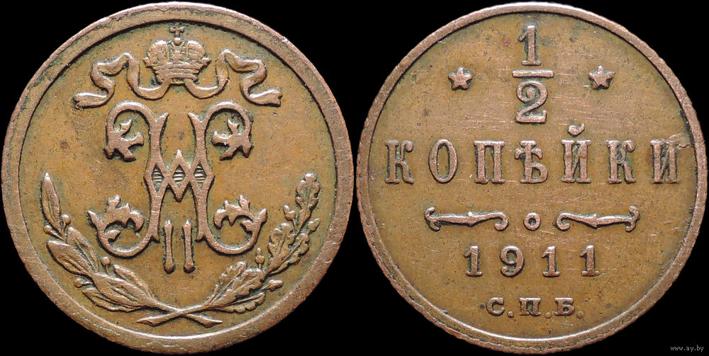 1/2 копейки 1911, Отличная! Кабинетная! С 1 Рубля! Смотрите другие лоты!