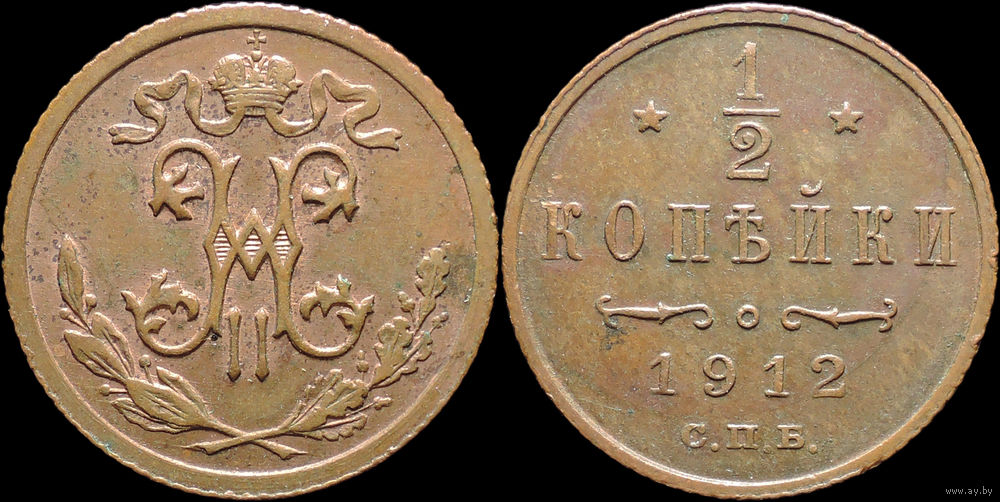 1/2 копейки 1912, aUNC, Кабинетная! С 1 Рубля! Смотрите другие лоты!