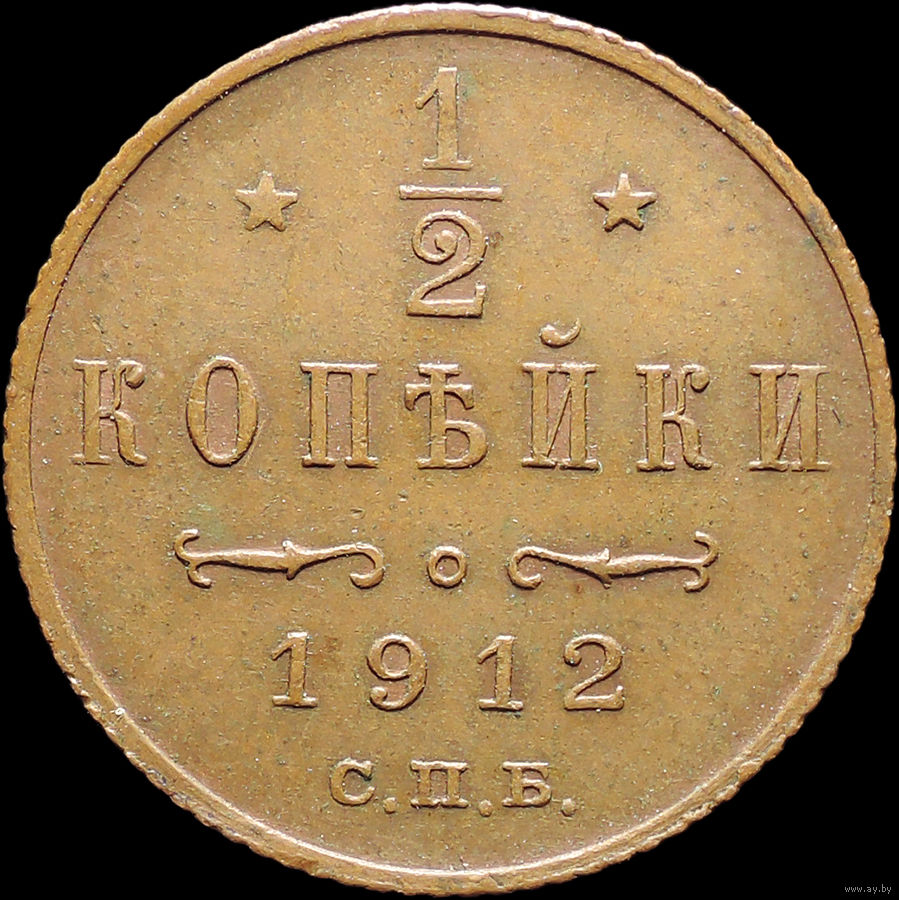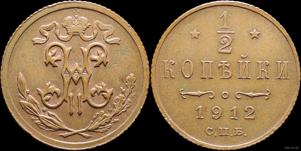 1/2 копейки 1912, aUNC, Кабинетная! С 1 Рубля! Смотрите другие лоты!