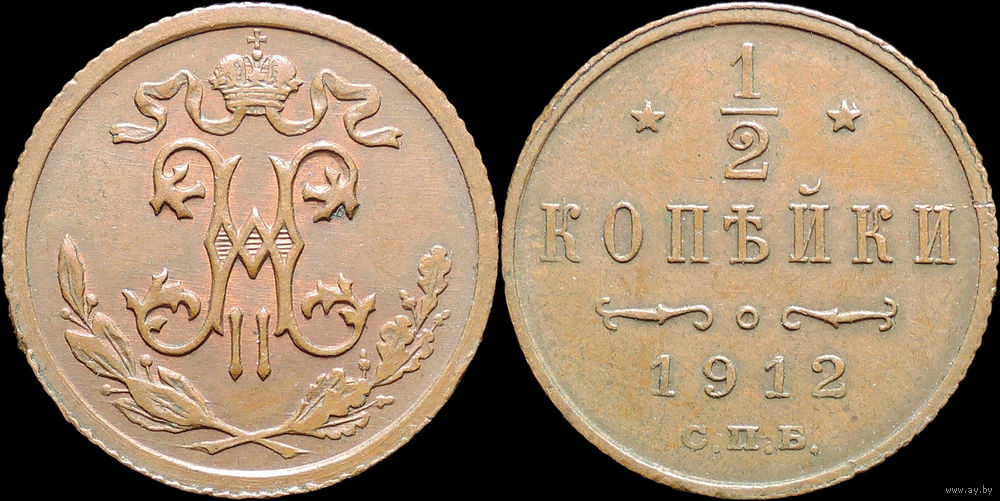 1/2 копейки 1912, aUNC, Отличная! С 1 Рубля! Смотрите другие лоты!