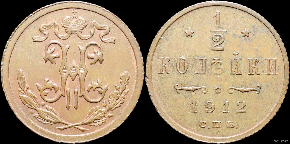 1/2 копейки 1912, UNC, Кабинетная! С 1 Рубля! Смотрите другие лоты!