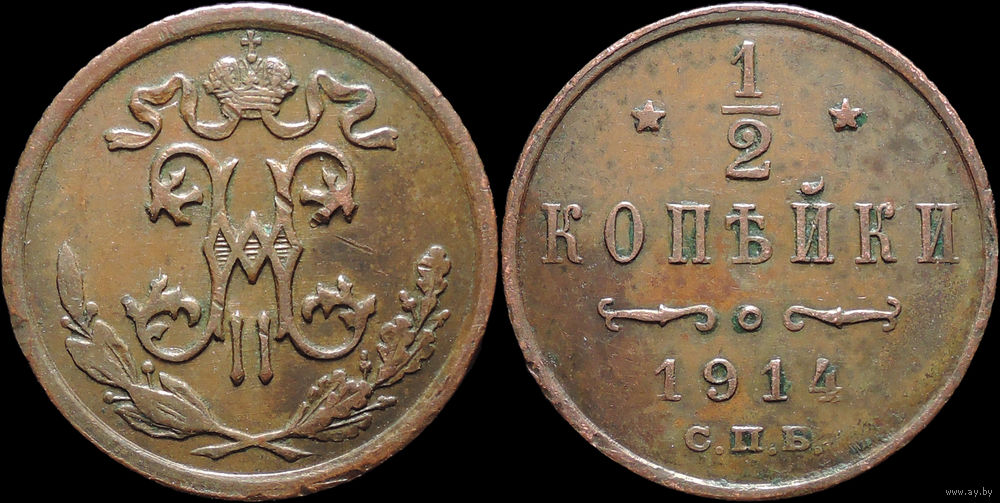 1/2 копейки 1914, Отличная! Кабинетная! С 1 Рубля! Смотрите другие лоты!