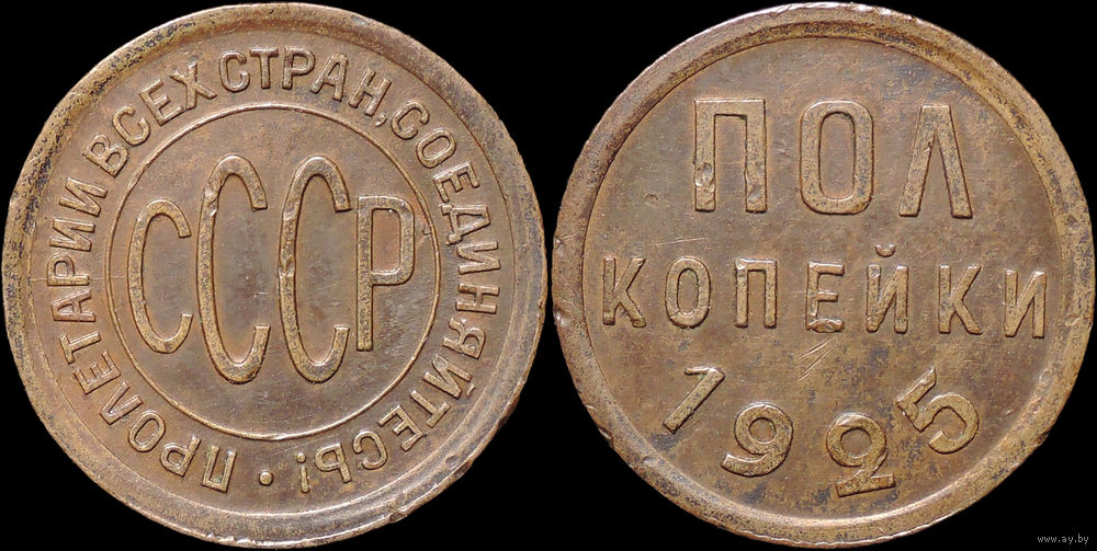 1/2 копейки 1925, aUNC, Кабинетная! С 1 Рубля! Смотрите другие лоты!