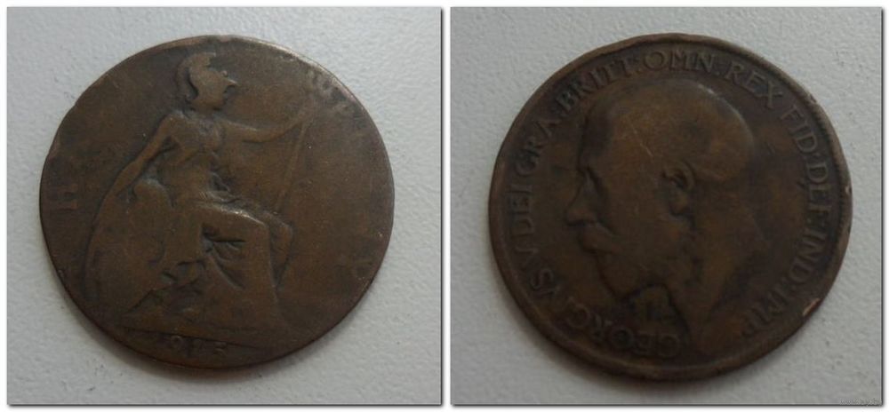 1/2 пенни Великобритания 1915 год, KM# 809, 1/2 PENNY - из мешка