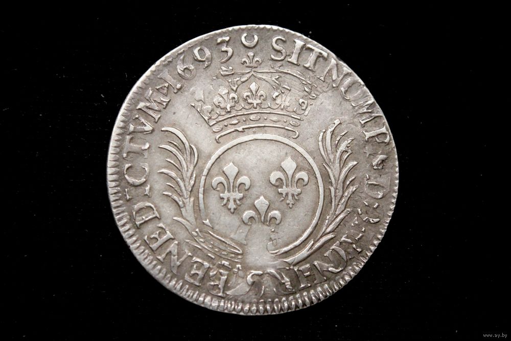 1/2 талера (экю) 1693 г. Франция, Людовик XIIII. Кабинетная патина!