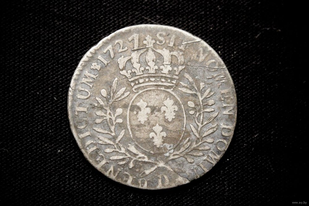 1/2 талера (экю) 1727 г. Франция, Людовик XV. Кабинетная патина!