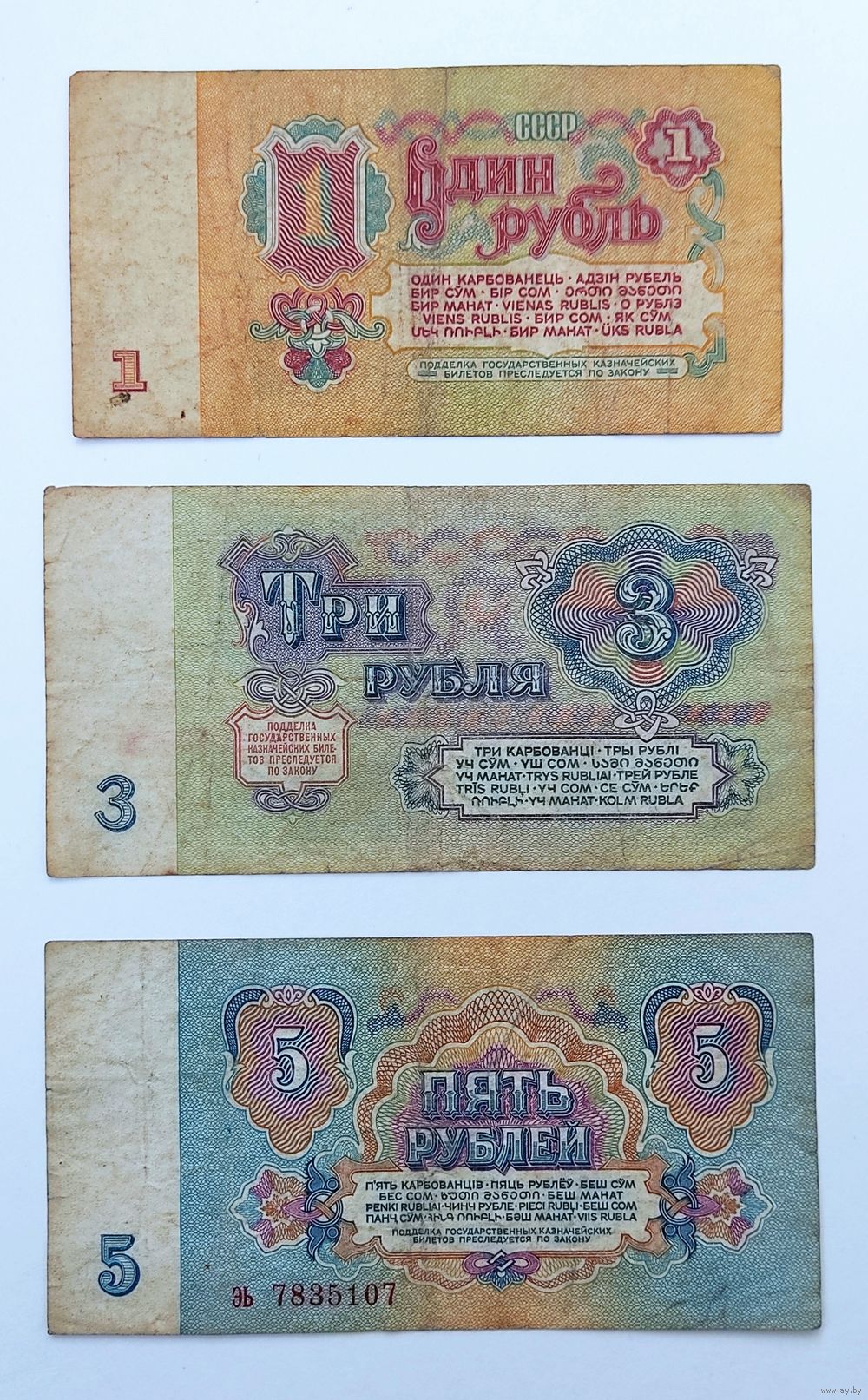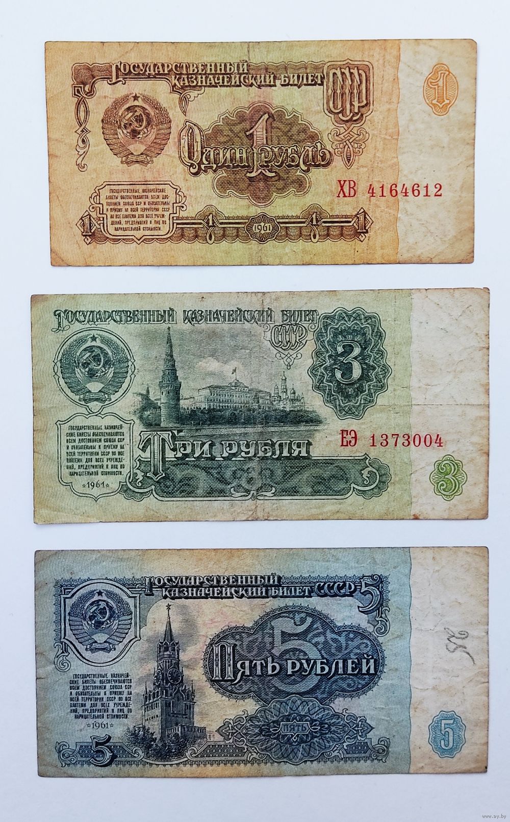 1, 3, 5 рублей 1961 года СССР (одним лотом).