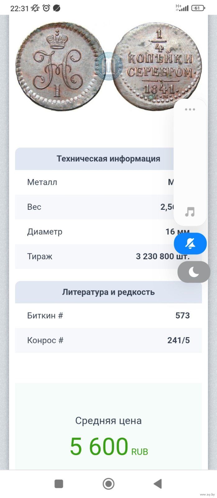 1/4 копейки 1841 ем. Состояние! ТОРГ!
