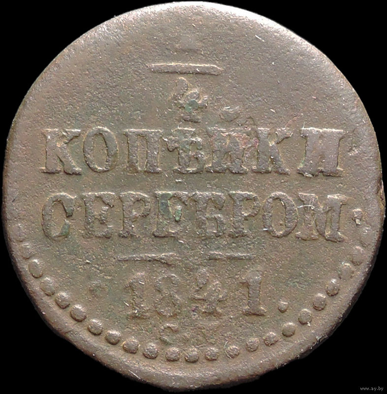 1/4 копейки 1841 СМ, Нечастая! С 1 Рубля! Смотрите другие лоты!
