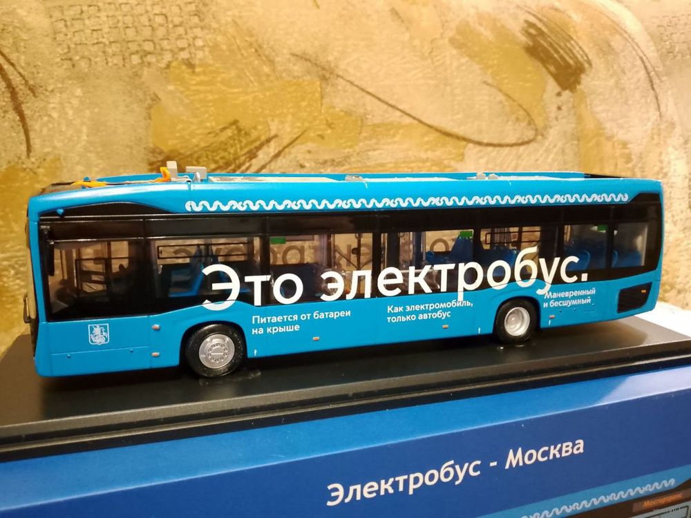 1:43 Фирменные масштабные модели автобусов, электробусов ГУП Мосгортранс, комплект из 4-ёх моделей:
