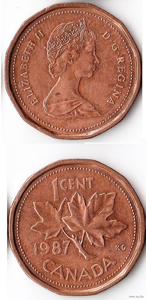1 цент Канада 1987 года