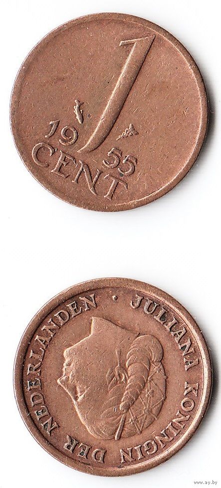 1 цент Нидерланды 1955 года