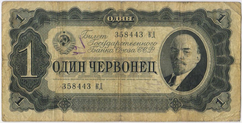 1 червонец 1937 год. серия 358443 КД