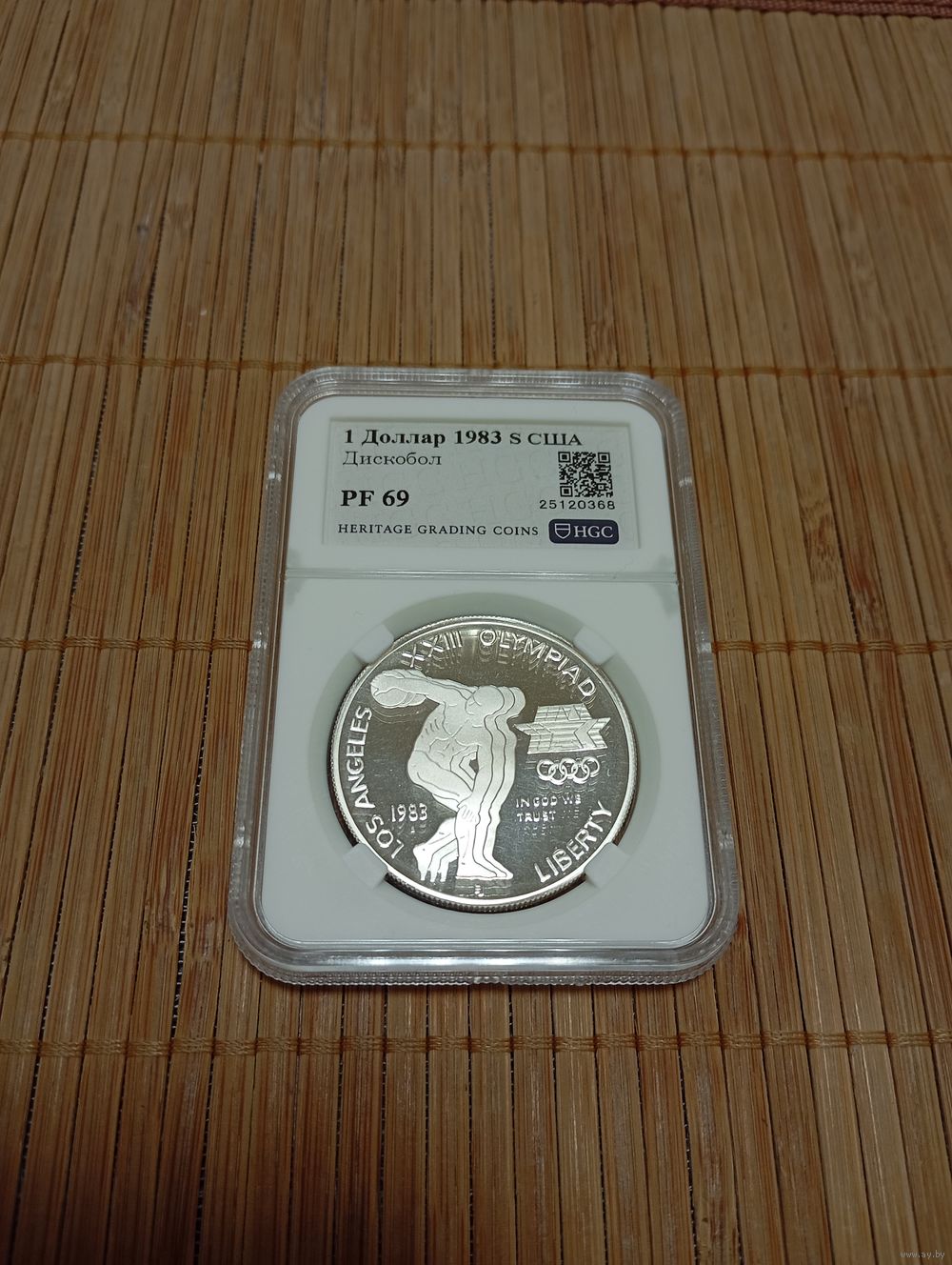 1 Доллар США 1983г.,Дискобол,Олимпиада!Слаб американской грейдинговой фирмы HGC,PF 69!Высокий грейд!ВЫХОД НА СВЯЗЬ И ОПЛАТА ЛОТА В ТЕЧЕНИИ 3-Х СУТОК!ГАРАНТИРУЮ НАДЕЖНУЮ УПАКОВКУ И БЫСТРУЮ ОТПРАВКУ!ВСЕ ВОПРОСЫ ДО СТАВОК!КОРОТКИЙ АУКЦИОН!ВСЕМ УДАЧИ!!!