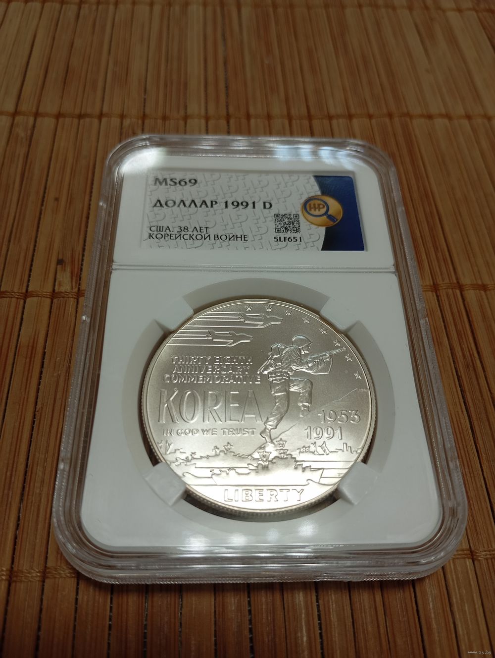 1 Доллар 1991г.,D,США,Война в Корее,MS 69!Отличный,в коллекцию!ВЫХОД НА СВЯЗЬ И ОПЛАТА ЛОТА В ТЕЧЕНИИ 3-Х СУТОК!СО СВОЕЙ СТОРОНЫ ОБЯЗУЮСЬ НАДЕЖНУЮ УПАКОВКУ И БЫСТРУЮ ОТПРАВКУ!ЗА ПОЧТУ ОТВЕТСТВЕННОСТЬ НЕ НЕСУ!ВСЕ ВОПРОСЫ ЗАДАВАЙТЕ ДО ТОГО КАК СДЕЛАТЬ СТАВКУ,ЛИБО ДО ОКОНЧАНИЯ ТОРГОВ!ВСЕМ УДАЧИ!!!