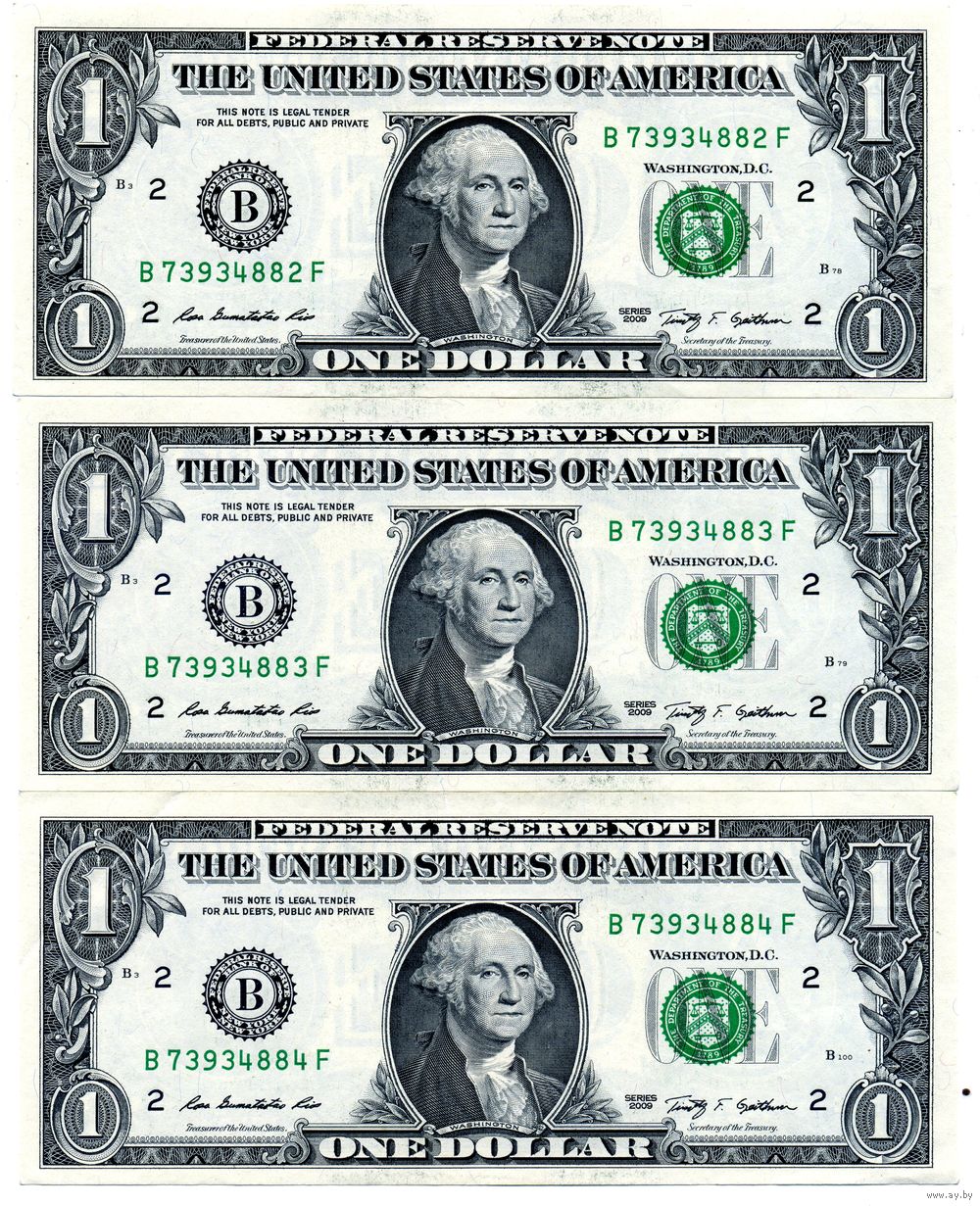 1 доллар 2009 B 3 номера подряд