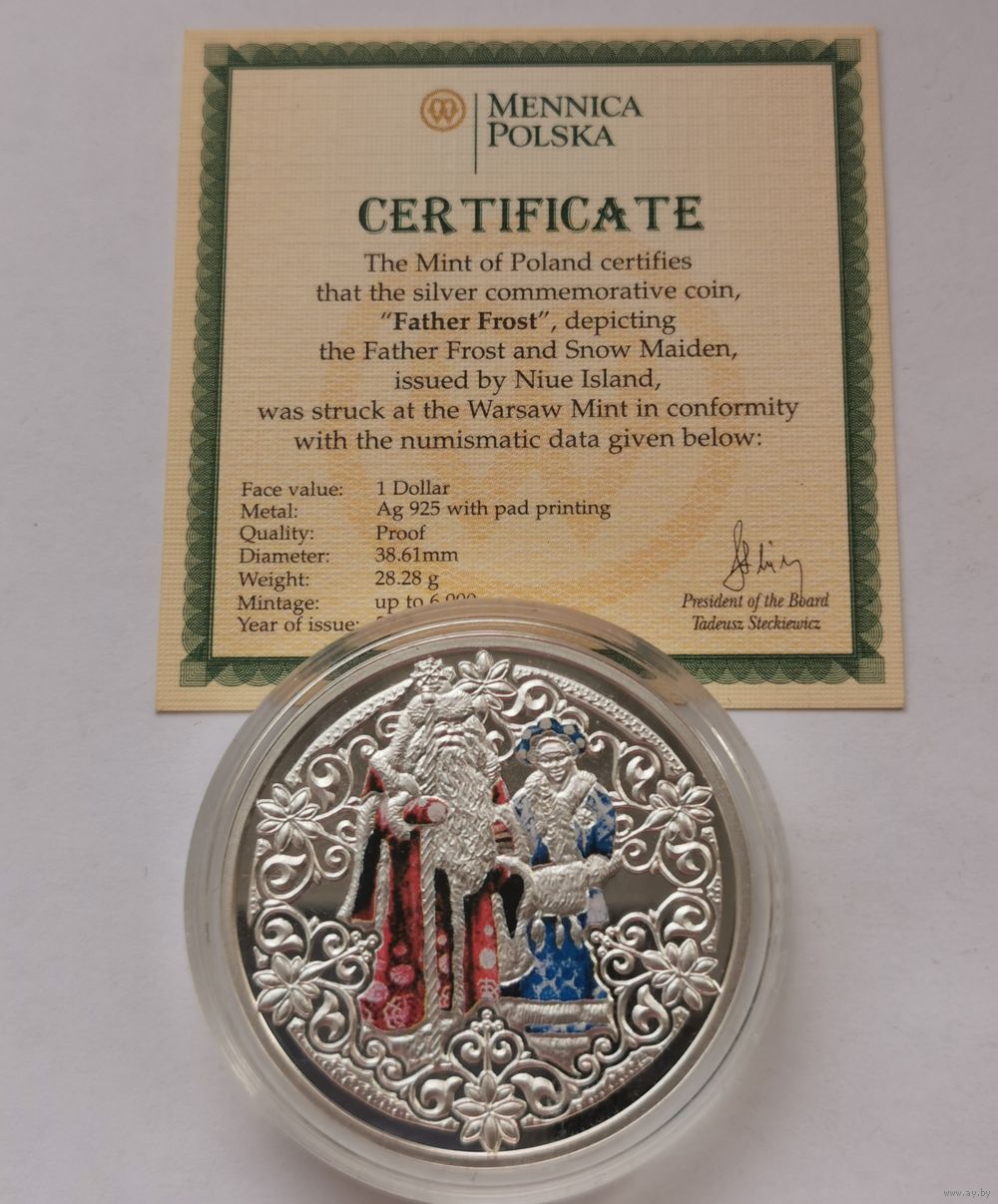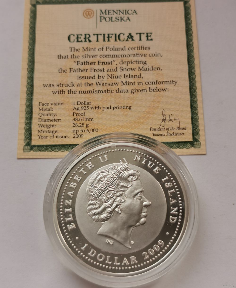 1 доллар 2009 г. Дед Мороз и Снегурочка. Ниуэ. С рубля.