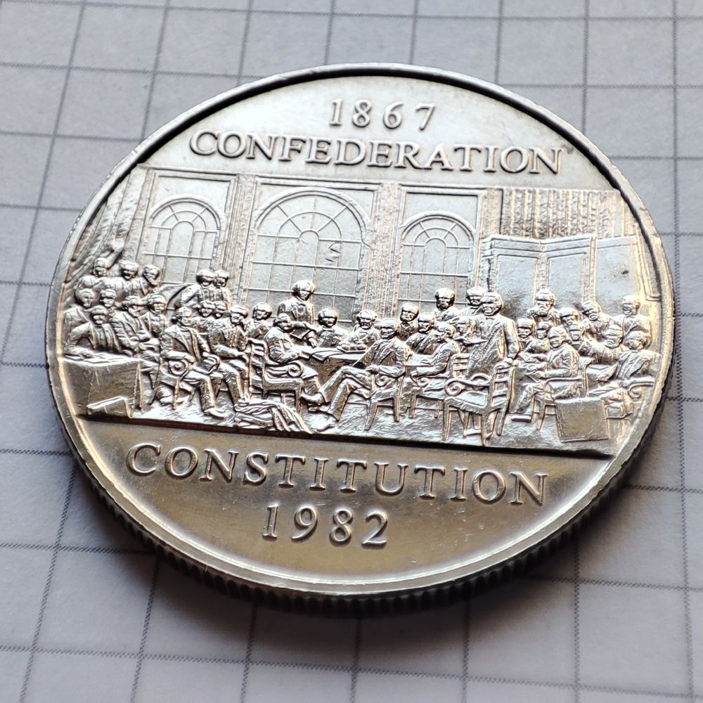 1 доллар Канады 1982 года. В честь принятия новой Конституции Канады.