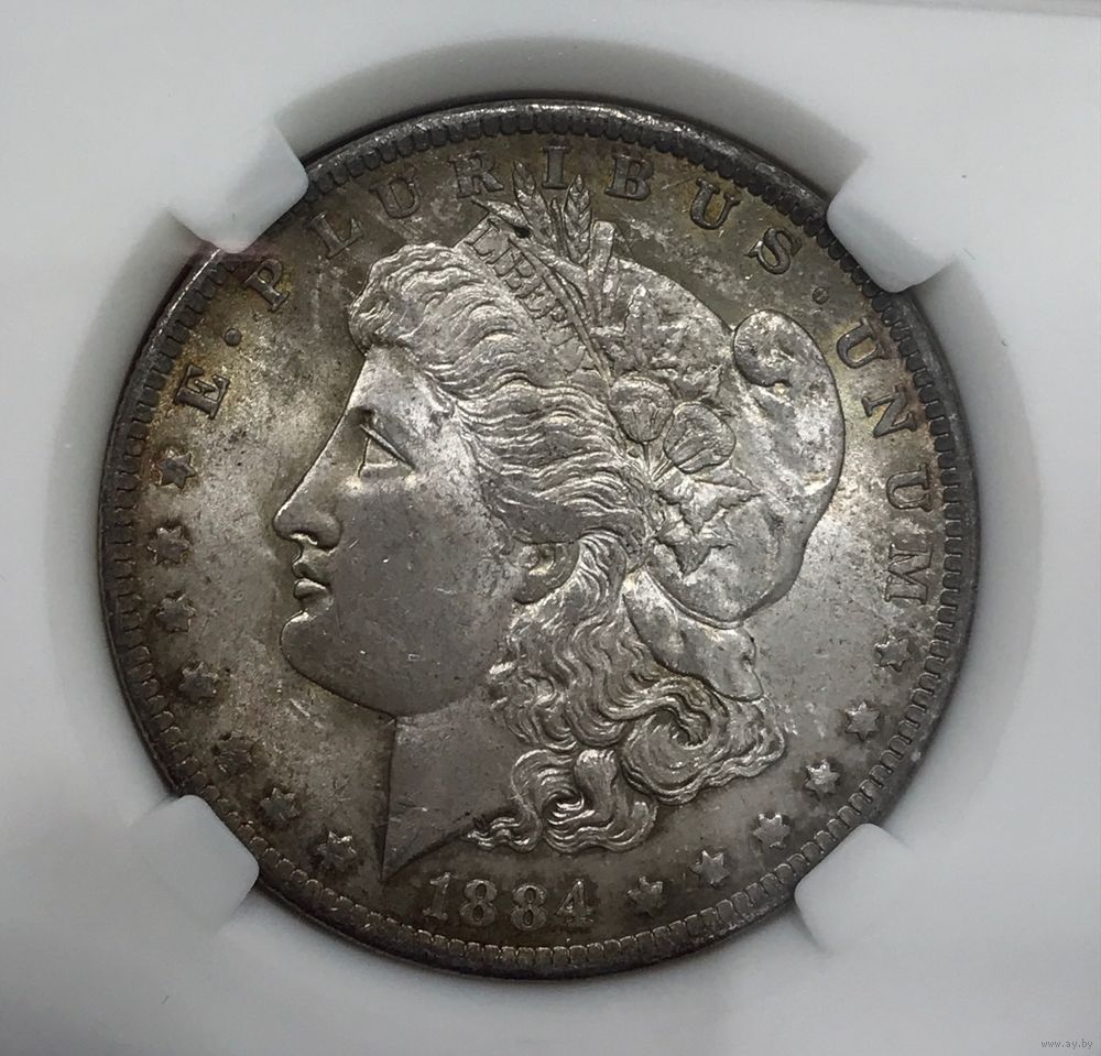 1 доллар Морган 1884 o США ms 65 патина