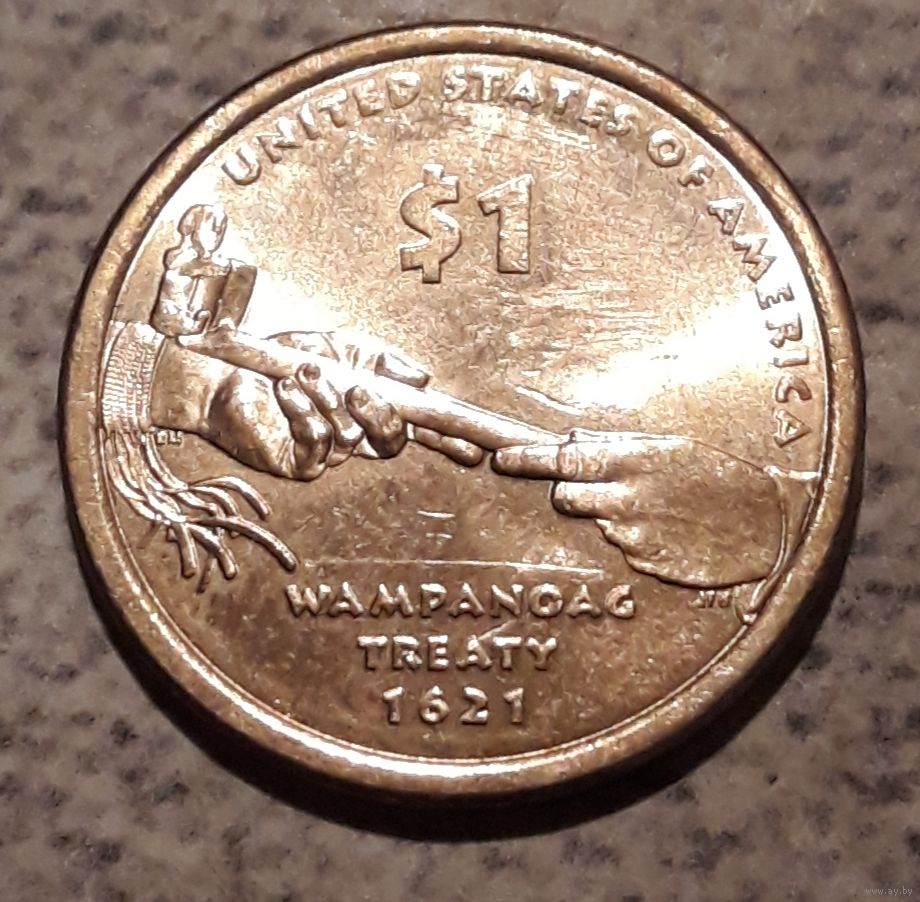 1 доллар США 2011 Договор с Вампаноагами серия "Коренные американцы"