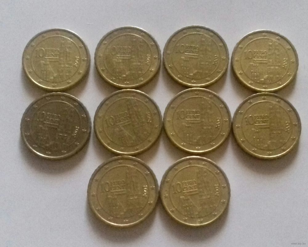 1 евро Австрия 2002 г. (10 монет по 10 ец.)