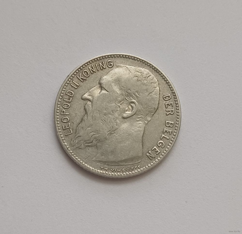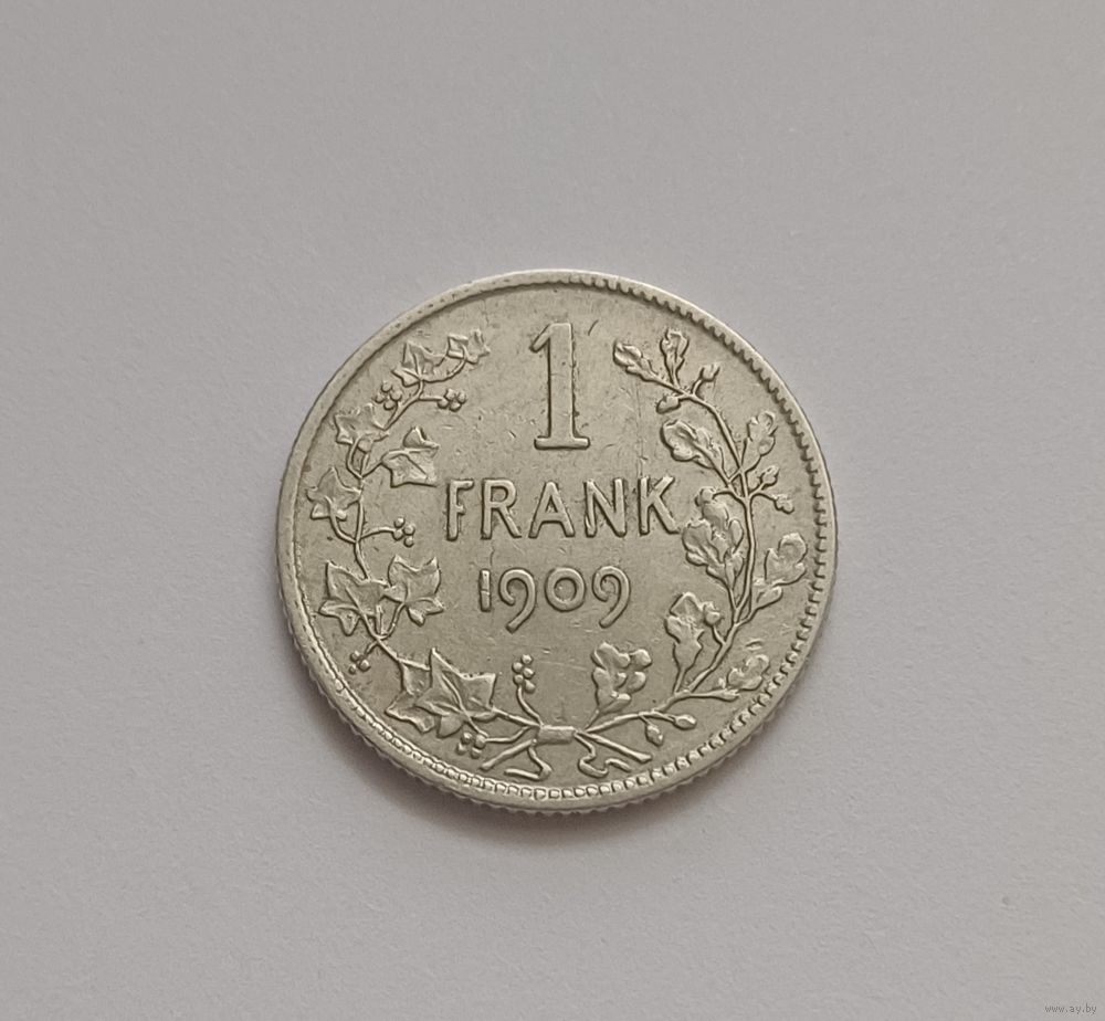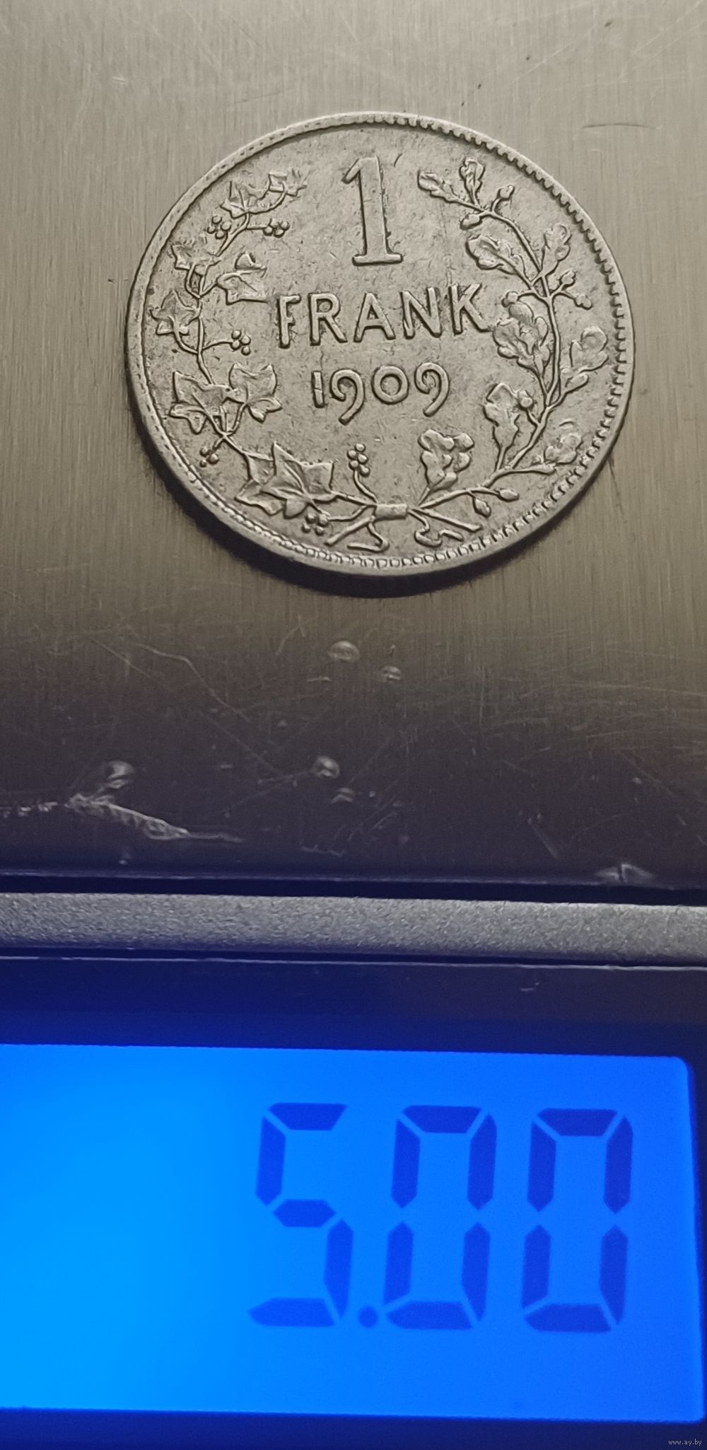 1 франк. 1909 г.835пр., серебра. Бельгия. Король Леопольд II.