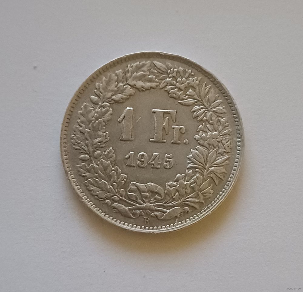 1 франк. 1945г. 835пр., серебра. Швейцария.