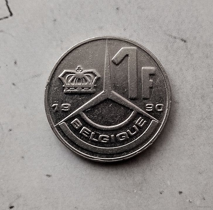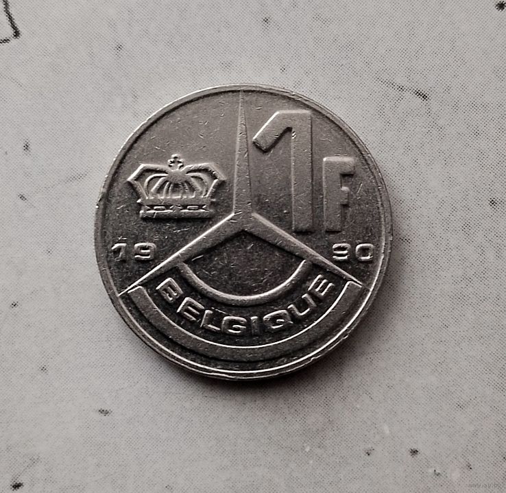1 франк 1990 года Бельгия (надпись на французском "BELGIQUE"). Король Бодуэн 1(1948-1993).