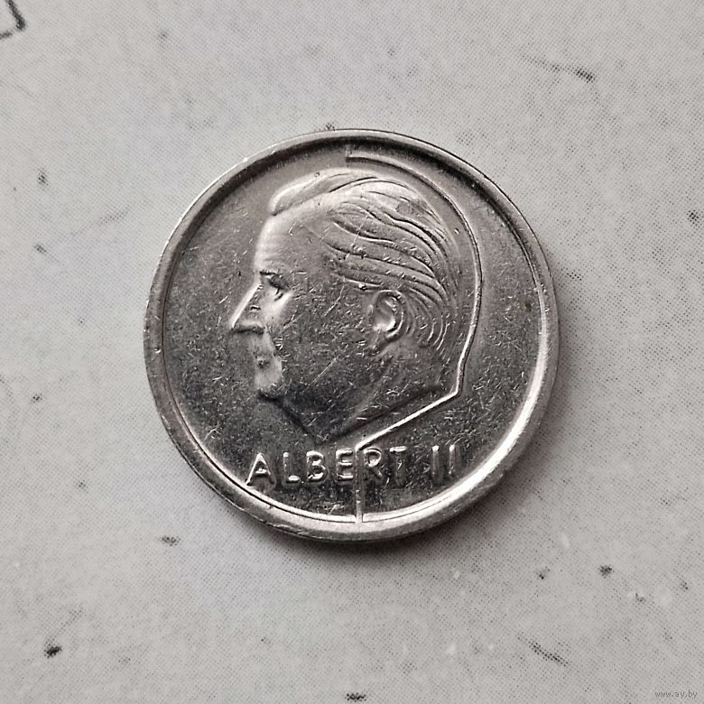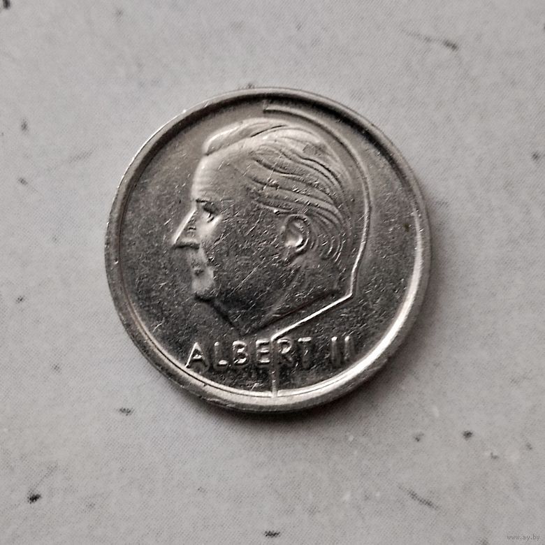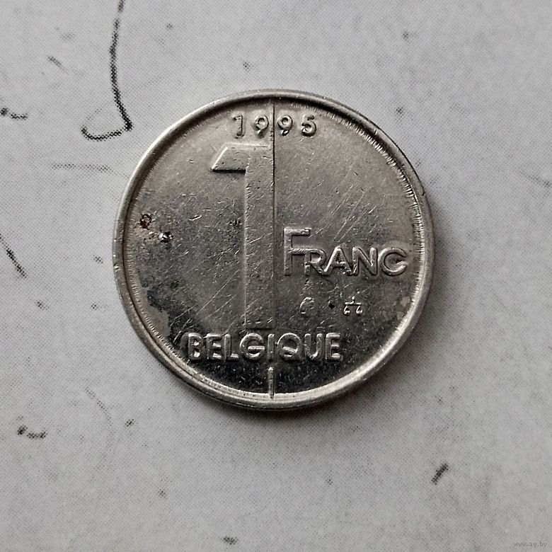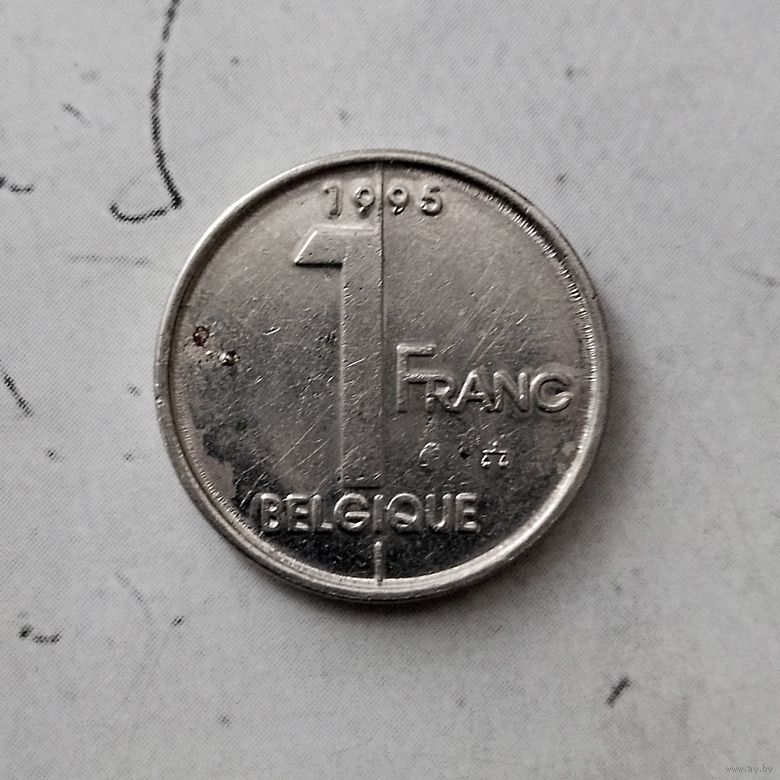1 франк 1995 года Бельгия (надпись на французском "BELGIQUE"). Король Альберт 2.