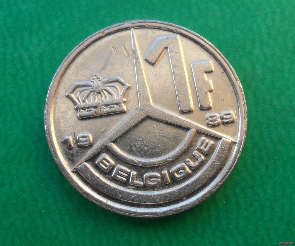 1 франк Бельгия 1989 г.в. Надпись на французском - 'BELGIQUE'.