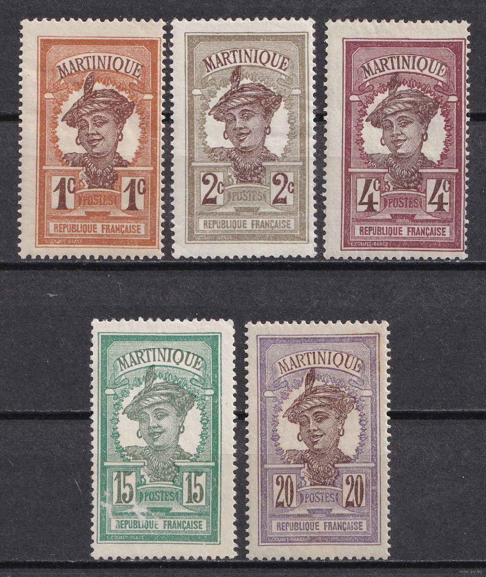 1.FrK. Франция. Колонии. Мартиника. Местные мотивы. 1908/1925 гг. Mi.##56-58/62/87 (* - Mi.#87 без клея).