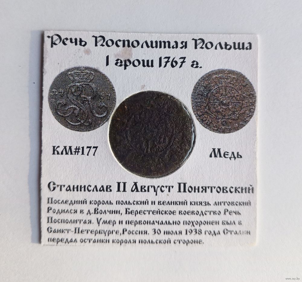 1 грош 1767 г. Станислав Август Понятовский. В холдере 5х5 см.