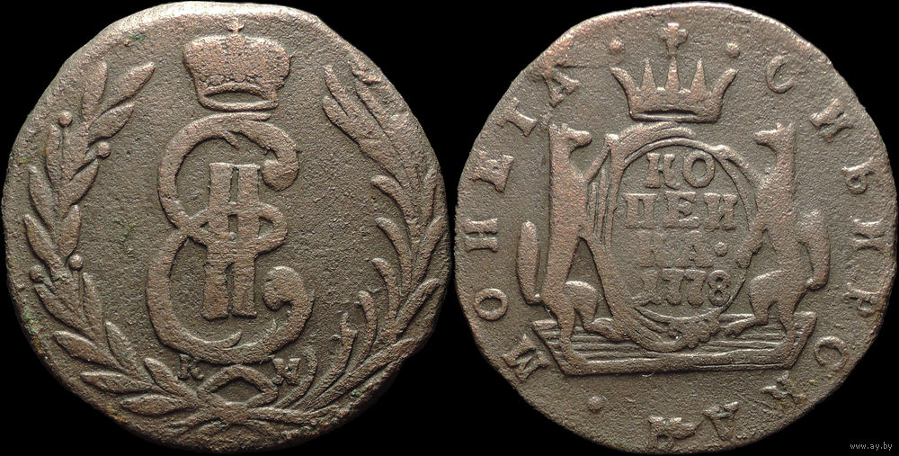 1 копейка 1778 КМ, Отличная! Нечастая! С 1 Рубля! Смотрите другие лоты!