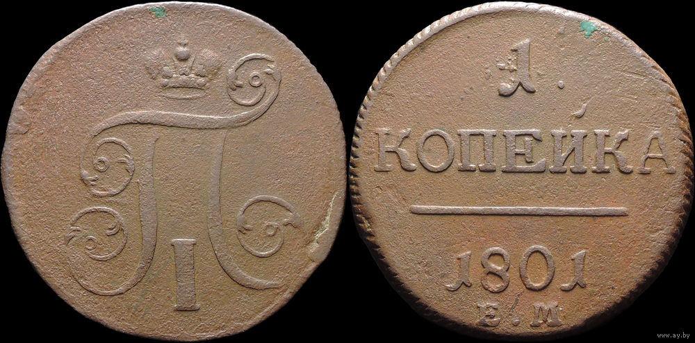 1 копейка 1801 ЕМ, Отличная! С 1 Рубля! Смотрите другие лоты!