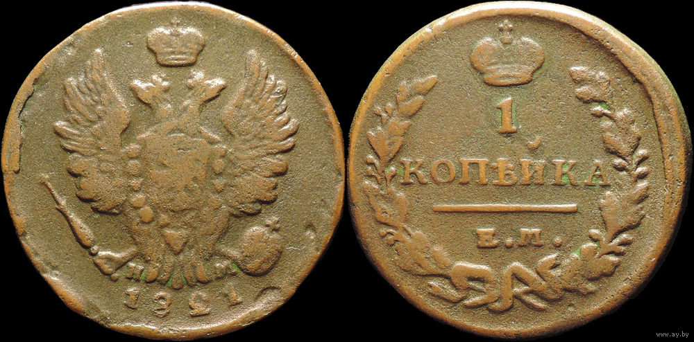 1 копейка 1821 ЕМ НМ, Отличная! С 1 Рубля! Смотрите другие лоты!