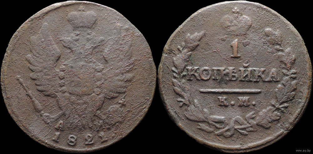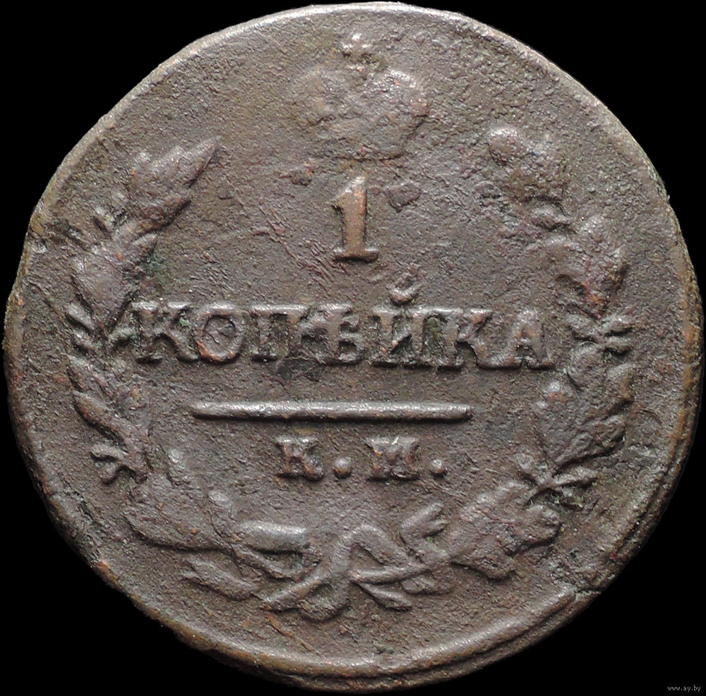 1 копейка 1821 КМ АМ, Нечастая! С 1 Рубля! Смотрите другие лоты!