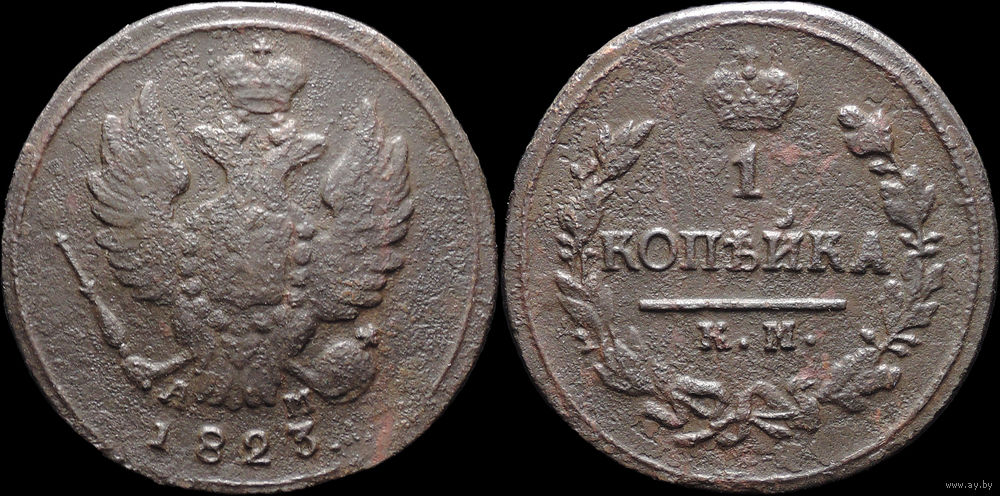 1 копейка 1823 КМ АМ, Нечастая! С 1 Рубля! Смотрите другие лоты!