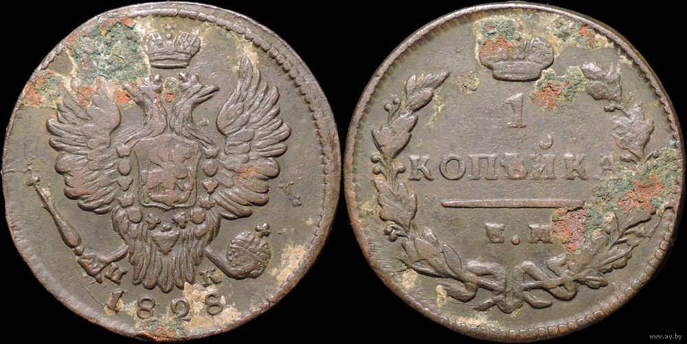 1 копейка 1828 ЕМ ИК, Отличная! С 1 Рубля! Смотрите другие лоты!