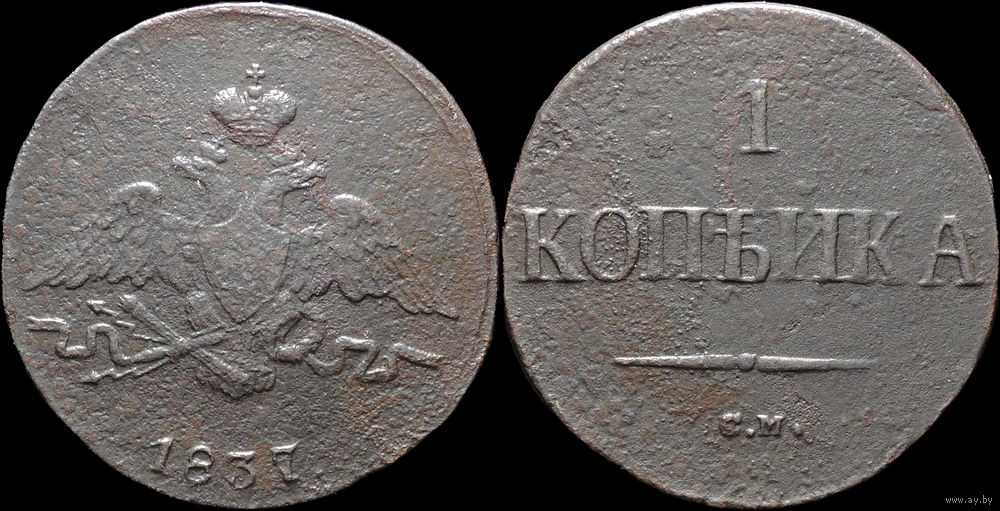 1 копейка 1837 СМ, Нечастая! С 1 Рубля! Смотрите другие лоты!