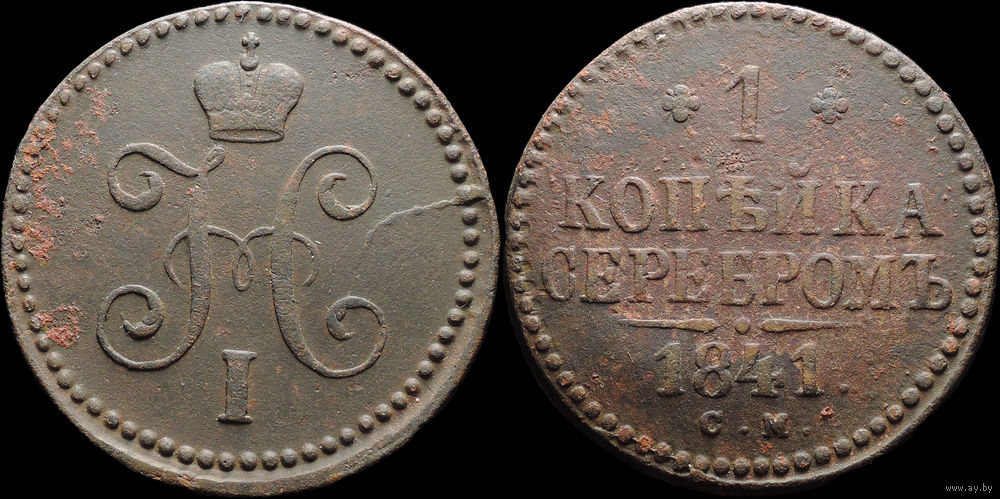 1 копейка 1841 СМ, Отличная! С 1 Рубля! Смотрите другие лоты!