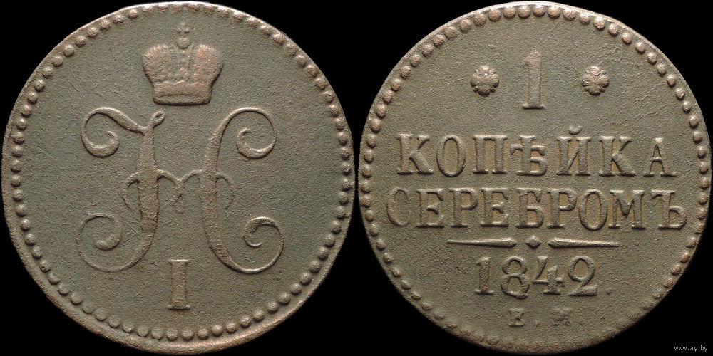 1 копейка 1842 ЕМ, Отличная! С 1 Рубля! Смотрите другие лоты!
