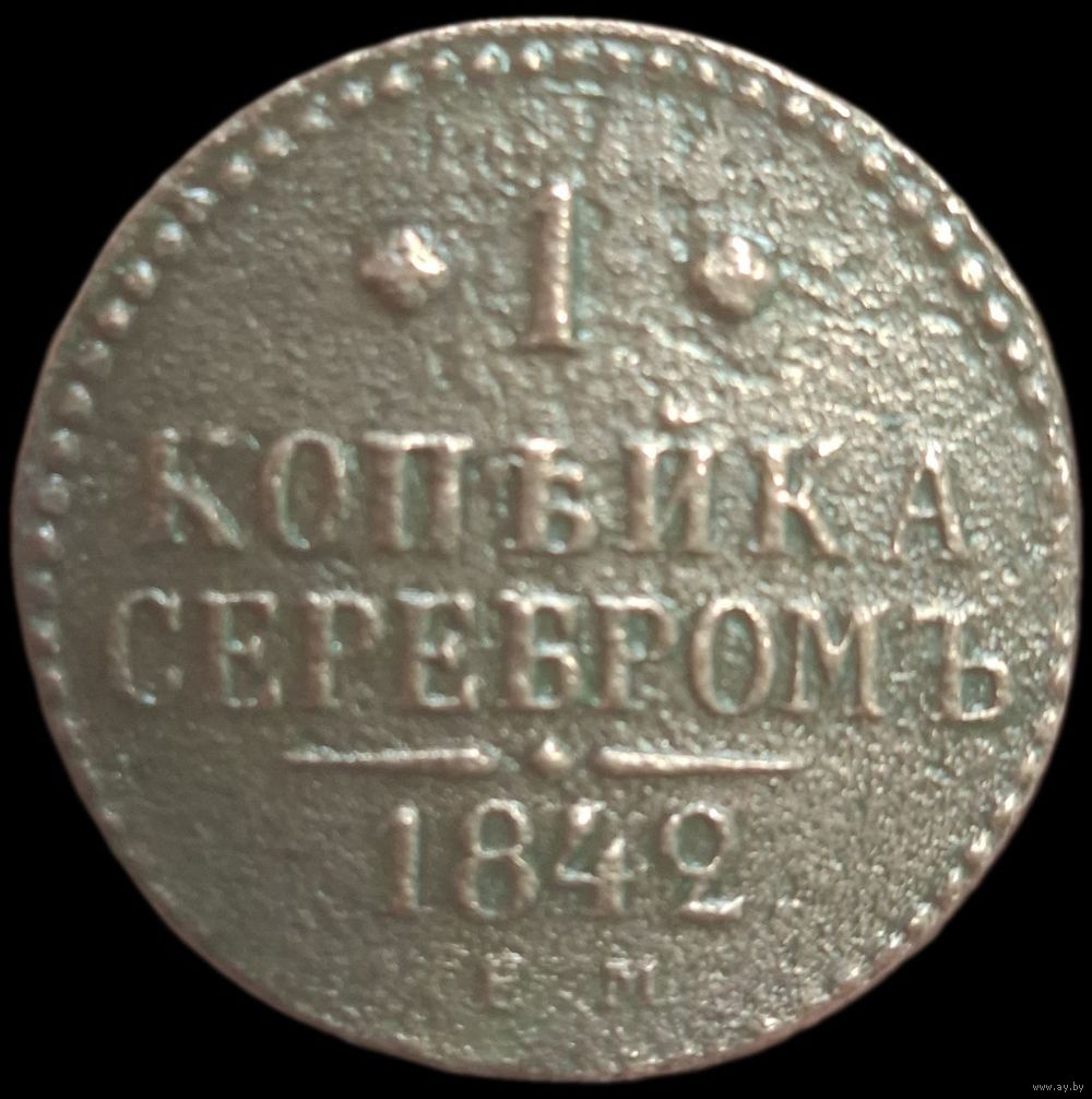 1 копейка 1842 года (Серебром, ЕМ, с вензелем Николая I)